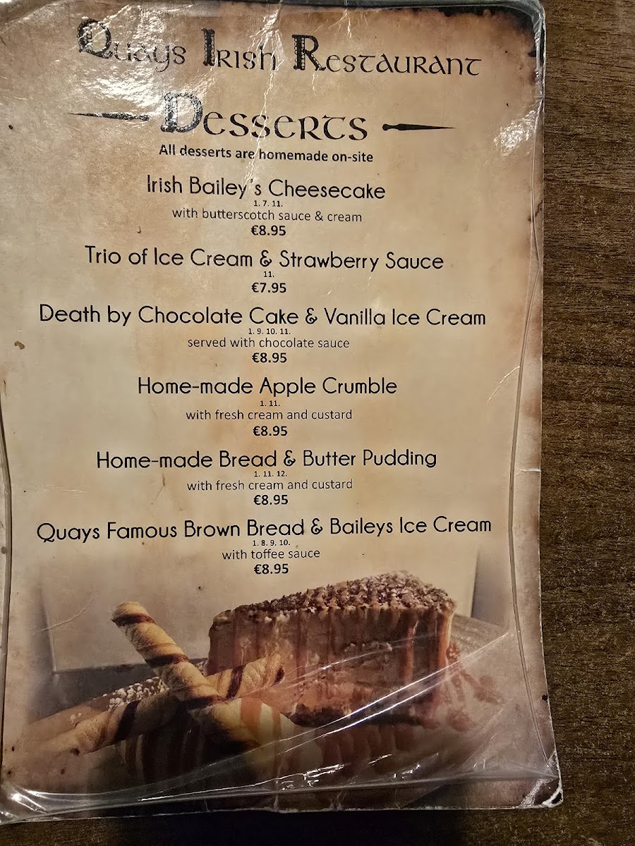 “ Ok.. So Quays has 2 sections. Bar downstairs with live music and drinks. That place is popping. We went twice while in Dublin. Love it! Upstairs The restaurant The wait can be crazy.. go early or risk waiting 20 mins or more. The food is tasty .. it's ok .. Bread & butter pudding was great though. Servers are nice but being so busy it's easy to feel like they want u out as fast as possible though it's tastefully done. ”